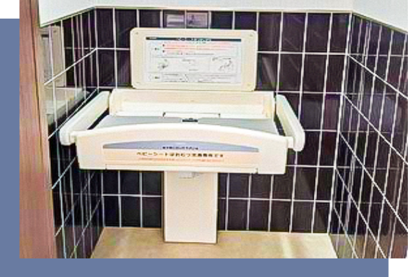 乳幼児など小さなお子様をお連れの方でも安心してご来院いただけるよう、トイレにはベビーシートも完備されています。常に清潔な環境であることを配慮し、定期的なチェックや清掃を行っております。