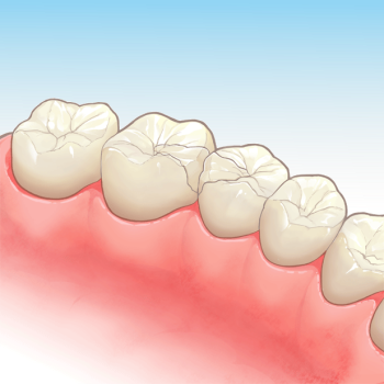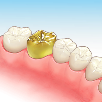 むし歯の範囲が広く、強度の問題などで詰め物ができない場合、かぶせ物(クラウン)をかぶせ、形を整えます。 |